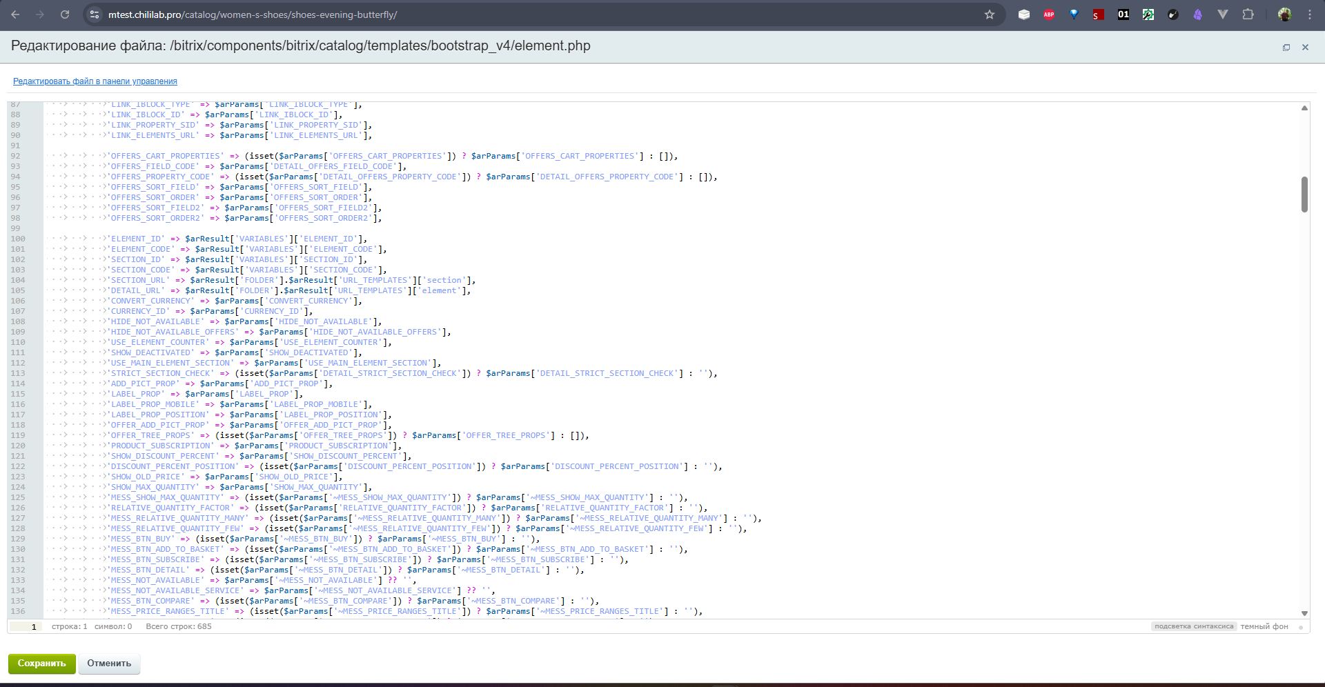 Откроется окно редактирования страницы элемента - element.php