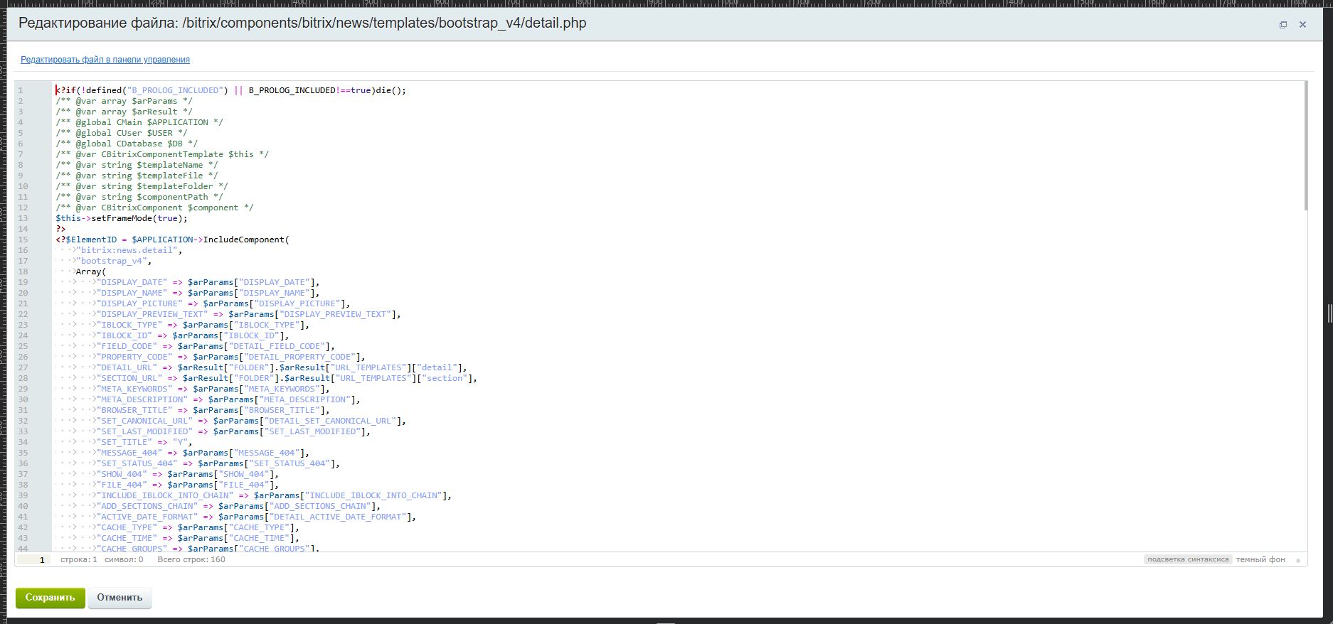 Найти подключение компонента bitrix:news.detail.